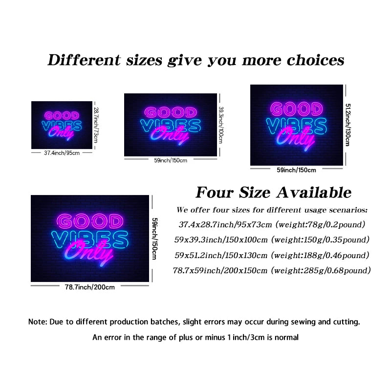 1pcAdd some inspiration and color to your living room or bedroom with our Fluorescent Inspirational Quotes Tapestry. This UV black light tapestry features vibrant colors and motivational quotes that will brighten up any space.