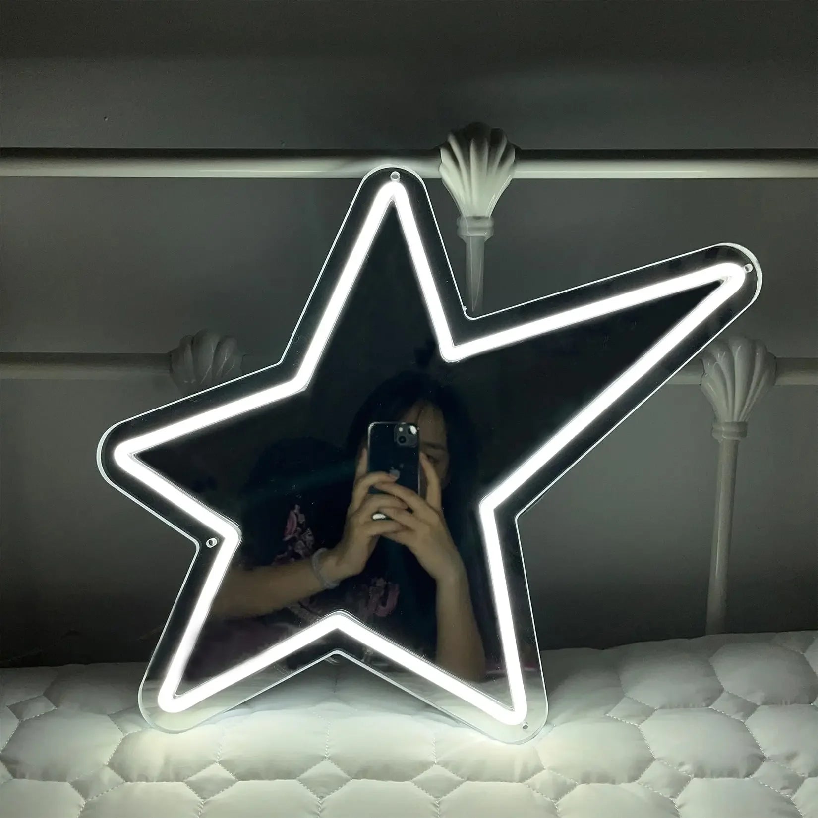Transform any room into a vibrant and stylish space with our Star Mirror Neon Sign. This unique wall decor piece is perfect for adding a touch of personality to your home, bedroom, game room, or even for a girls party or kids room. Its USB LED feature allows for easy plug and play, making it convenient to use in any setting.